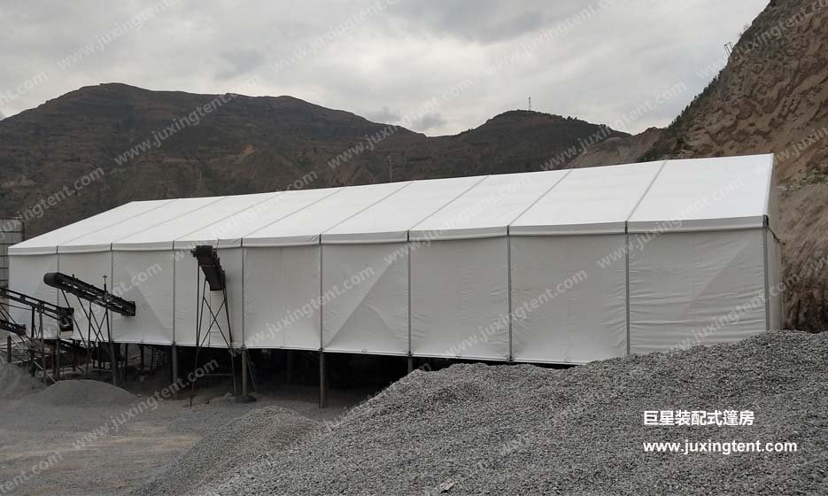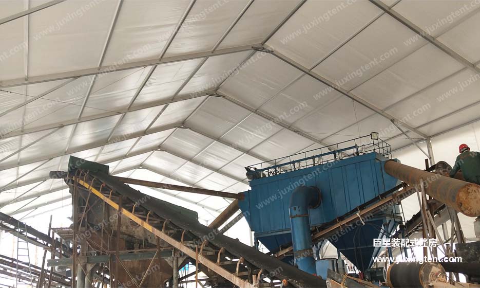 后來老板介紹道:“這是江蘇一家工廠研發(fā)出一種裝配式的廠房,跨度可達80米、長度無限延伸、高度10多米,能抗風載雪,材料也是高度符合環(huán)保要求。 如果不蓋棚子,這個灰到處飄,二十米內全都是灰,路上草上樹上地上,到處都是。長年累月積累下來的灰,相當驚人的。這樣做就把大部分灰留在了廠區(qū),不至于飄灑的哪里都是。像我做這個石料行業(yè)的,開采地點會時常變更,堆積物料的卸貨點也會變更,這就要一個遮蔽物隨著工作地點的變化而變化。而我現(xiàn)在使用的這種裝配式篷房就能輕松實現(xiàn),裝配式篷房就可以隨意搭拆,如果框架加上輪轂就可以實現(xiàn)篷房哪里需要哪里“走”。而且咱們也要積極樹立綠色治理理念,轉變思維,創(chuàng)新發(fā)展,為進一步提升全市的生態(tài)環(huán)境治理和空氣質量提升做出更大貢獻。”看來這位老板不僅會做生意,也非常有“覺悟”的!